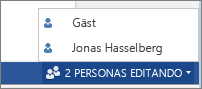 Cuando los usuarios hacen clic en el vínculo, van al documento. Para empezar a editarlos, haga clic en Editar en el explorador. Si se encuentra en el documento al mismo tiempo, verá que aparece como invitado.